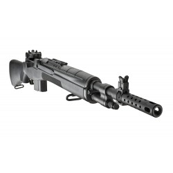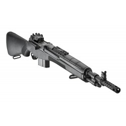 Kompakt, kraftfull semiautomatisk M1A i .308 Win med 18" pipa, frammonterad Picatinny-skena och proprietär dämpande muzzle brake — byggd för snabb hantering och prickskytte i begränsade utrymmen. Perfekt för jakt, terräng och taktisk träning.